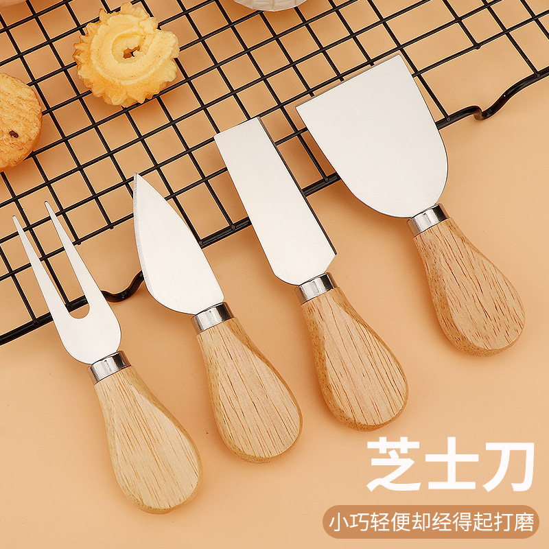 ステンレスチーズナイフ4点セットゴム木柄クリームカッターピザチーズナイフフォークシャベルチーズナイフセット