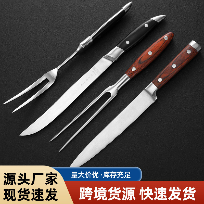 家庭用キッチン調理食材食器ステンレス鋼バーベキュー刀とフォーク食器屋外鉄板バーベキュー刀とフォークセット