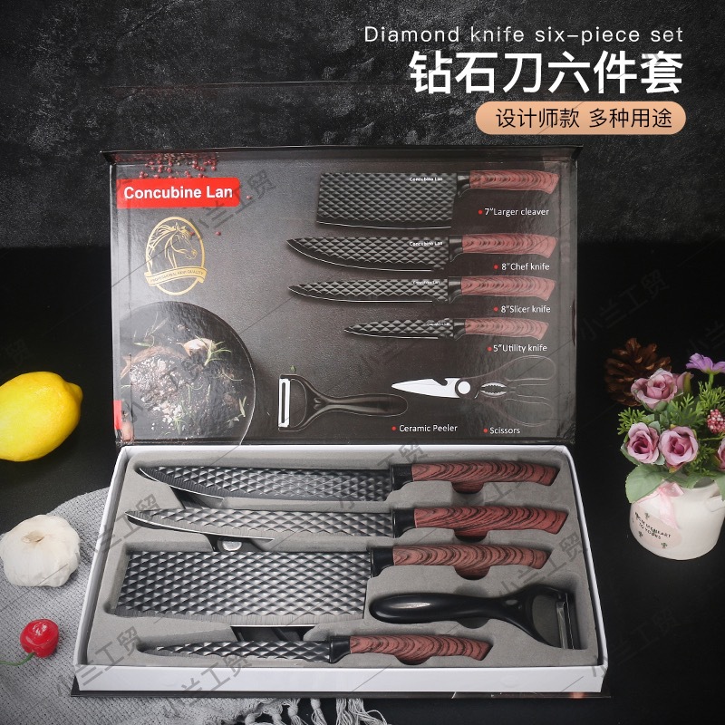 キッチンステンレス鋼ダイヤモンドパターンカバー木目調 6 トマト家庭用包丁フルーツナイフセットギフトボックスナイフセット