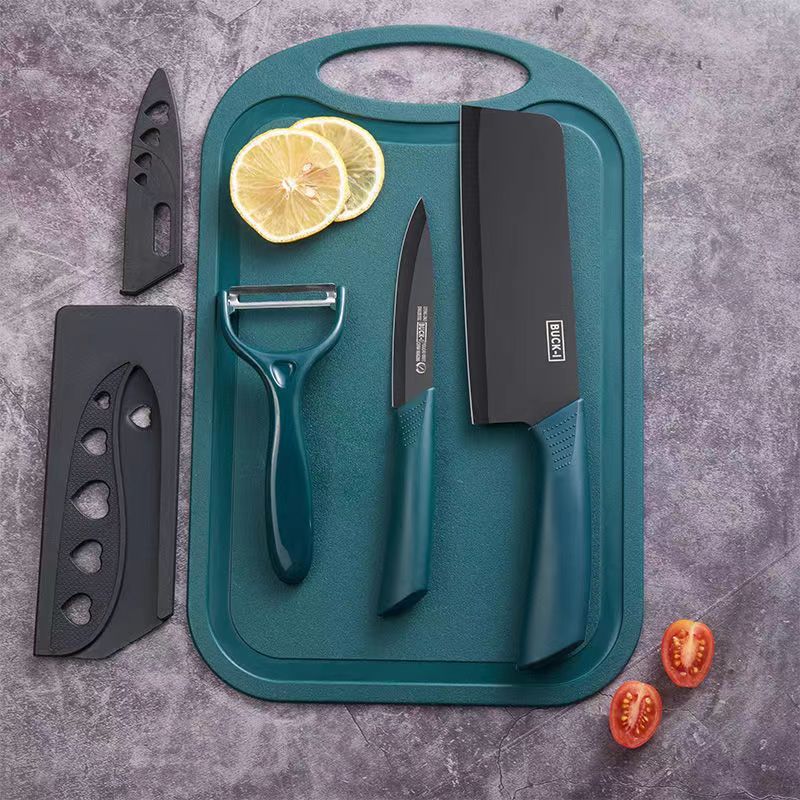 家庭用キッチンカッター4点セットマカロンカラーまな板フルーツナイフ瓜削り肉切り刃物セット