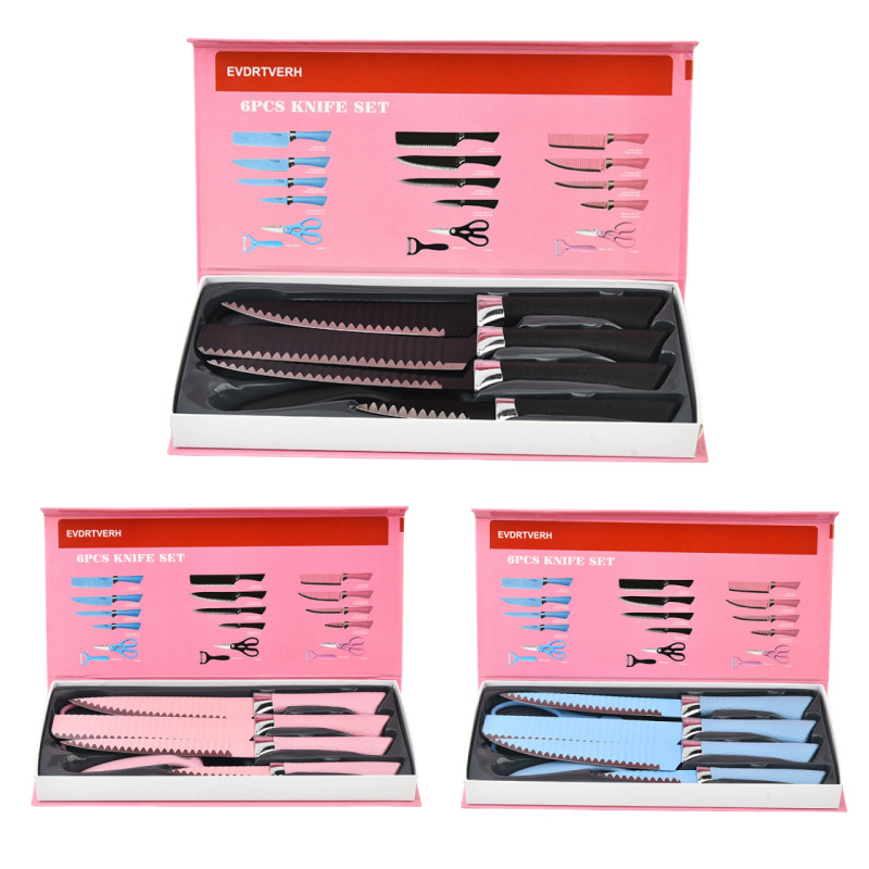 人気キッチン用品スプレーポイント馬蹄柄六点セットギフトボックス小包装カラーステンレス刃物セット