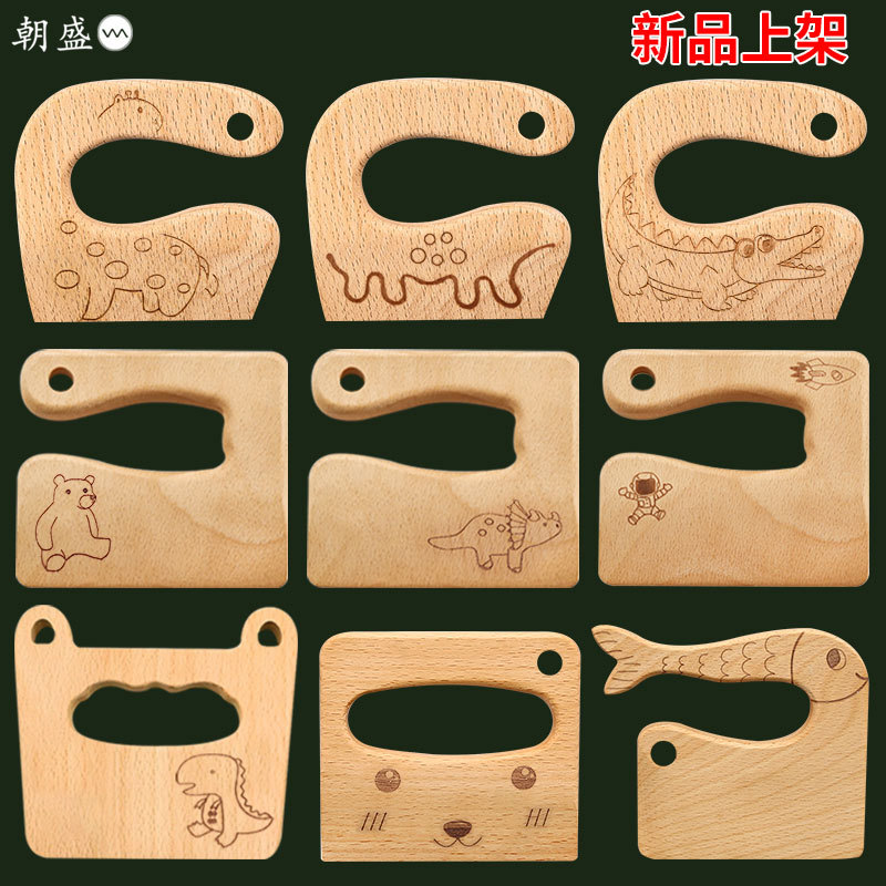 子供の木の切りの果物の刀の木の刀の果物の野菜の刀の木製のおもちゃの刀の幼児の教育の刀の漫画の魚の型の刀