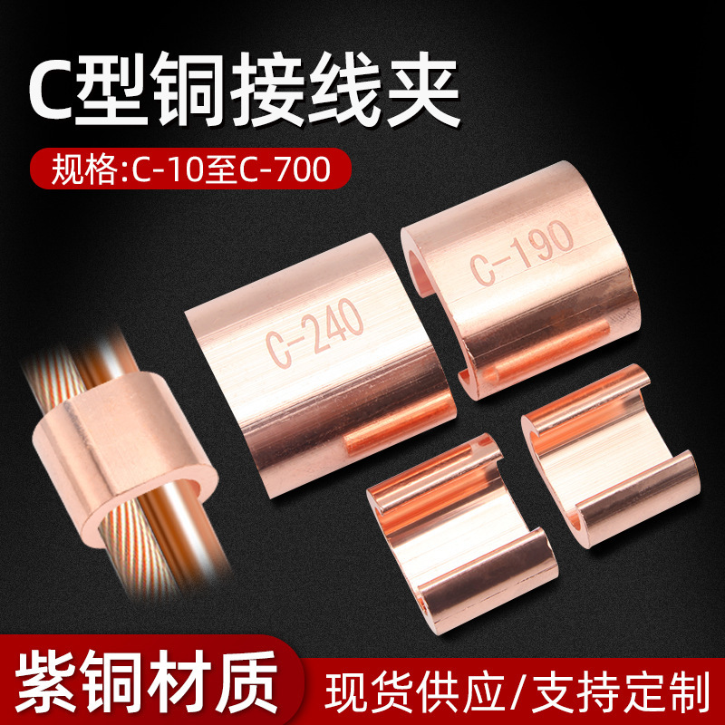 C型銅線クリップ二重線並線クリップケーブル分岐突合せCCT紫銅線クリップ固定端子クリップ錫メッキ