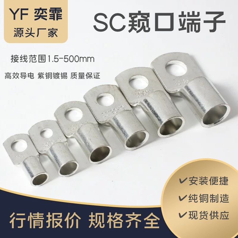 SCのぞき口銅線鼻紫銅線耳冷圧端子6/10/35/70/95/120/185平方