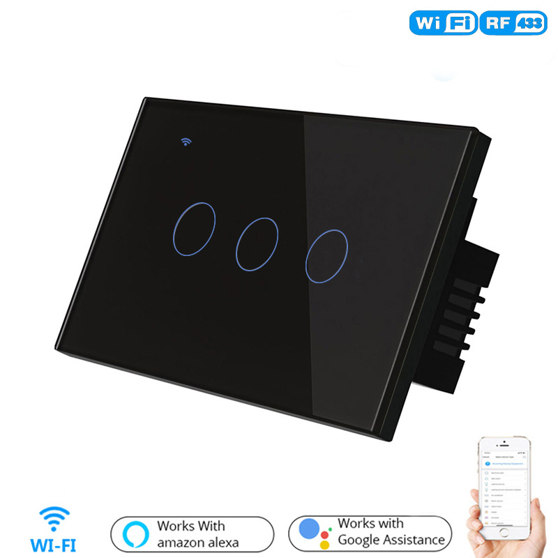 Wifi無線周波数機能120型3タッチスマートウォールスイッチ音声携帯電話app遠隔制御