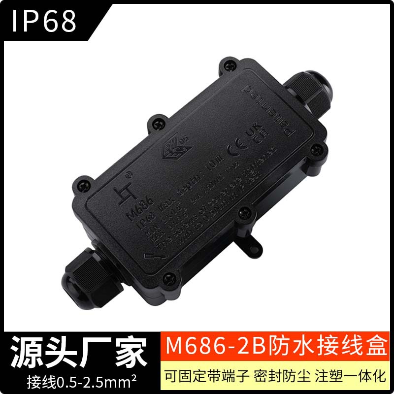 Ip 65防水接続箱2頭黒色プラスチック端子箱屋外地中埋設灯分線箱JX1285