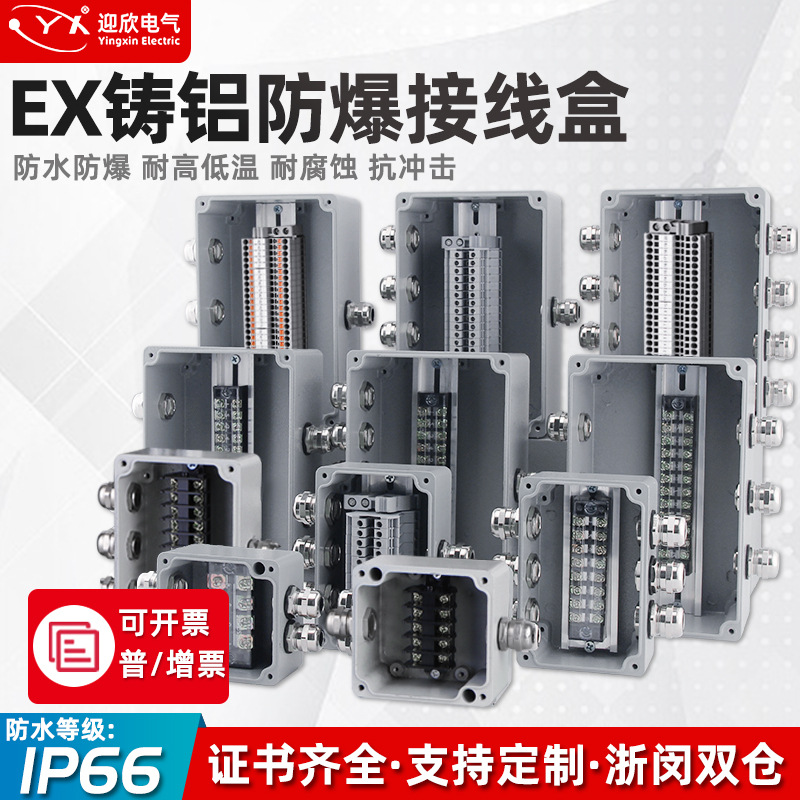 EX鋳造アルミ防爆接続箱屋外防水接続箱端子付き三方電源コード加工金属分線箱