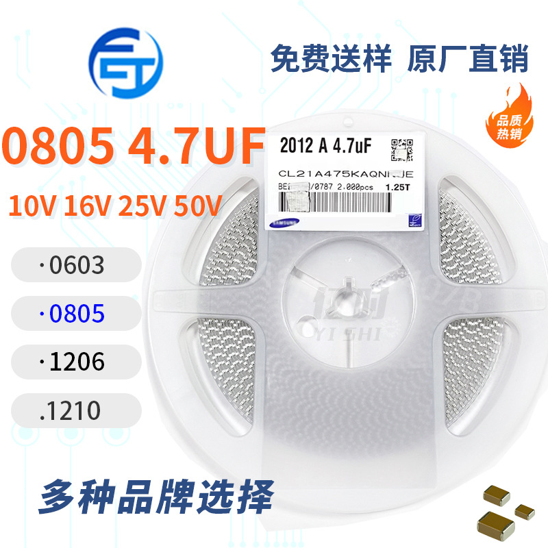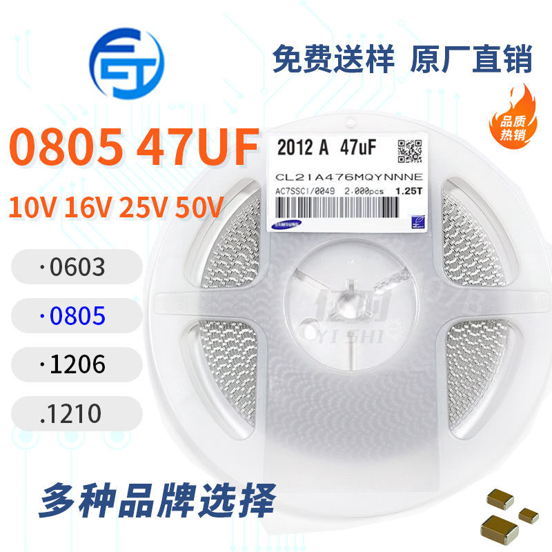 セラミックチップコンデンサ0805 47UF 476K 6.3V 10V 16V 25V 50V精度20% x 5r