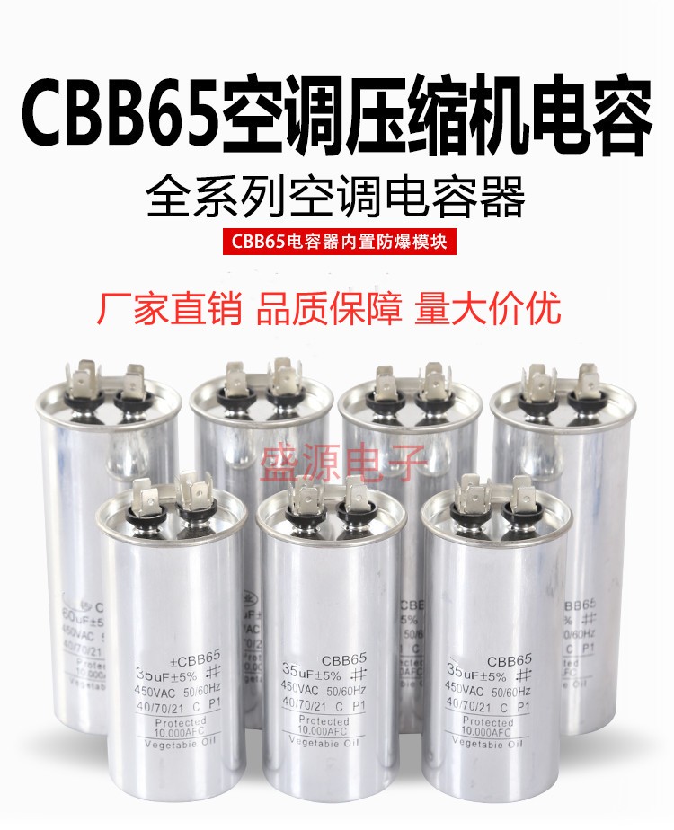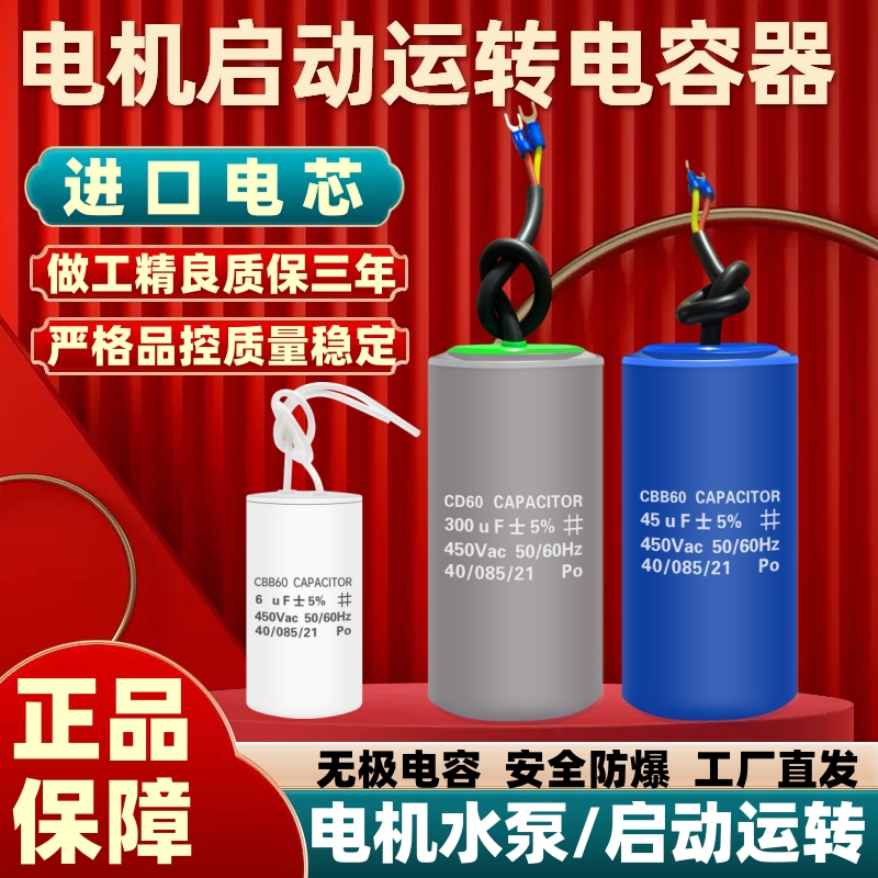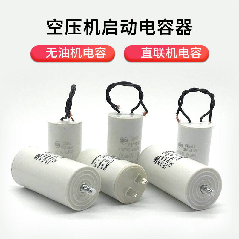 CBB60エアポンプオイルフリー直連式小型エアコンプレッサ部品CD60清洗車機起動コンデンサ450V