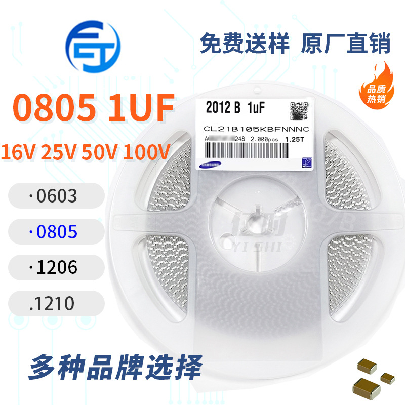 チップコンデンサ0805 UF 105K 10V/16V/25V/50V精度10% 材質7r