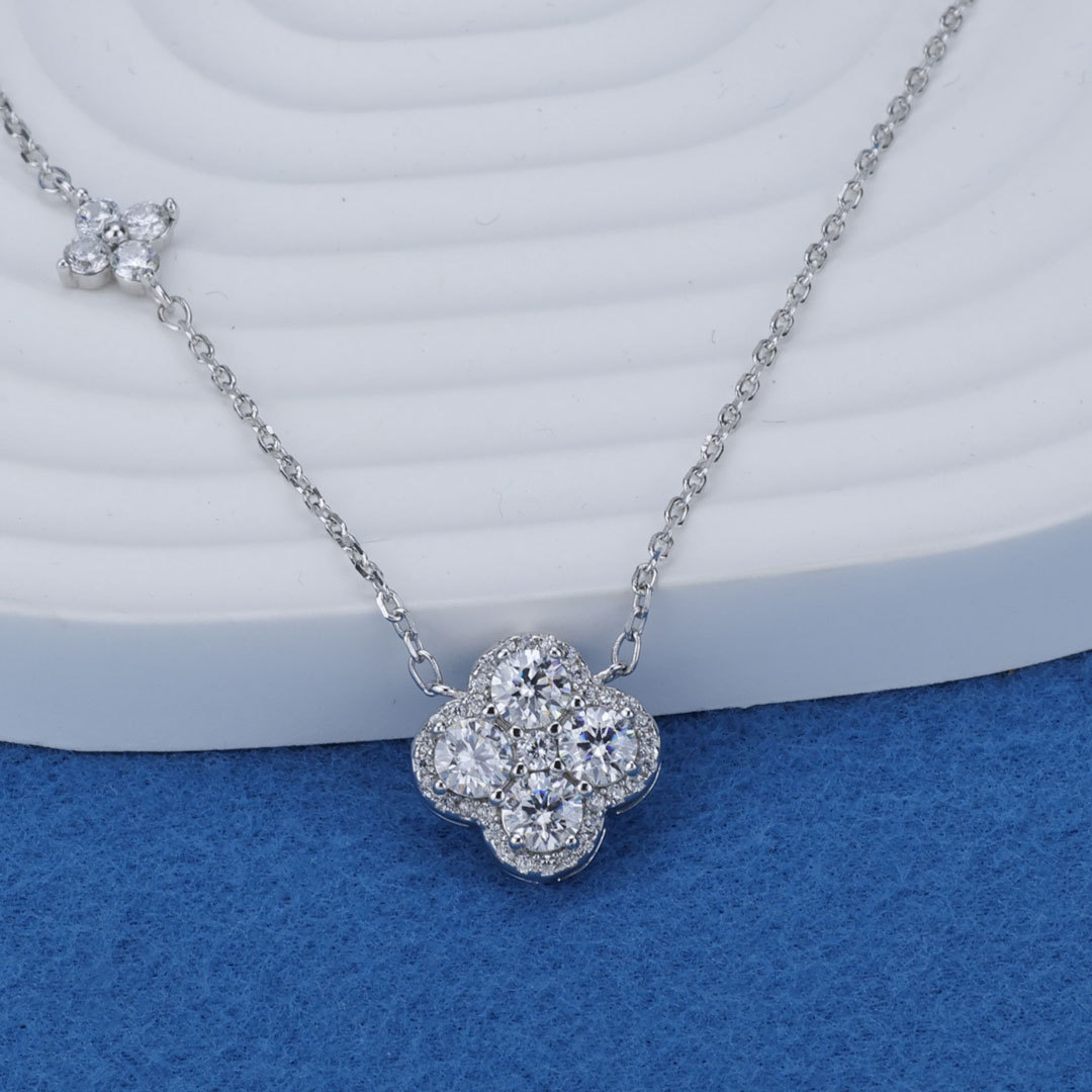 925 スターリングシルバー モアッサナイト 絶妙なフルダイヤモンド ニッチ クローバー ネックレス ガールフレンド用 ライト ラグジュアリー 多用途 気質 クロスボーダー ジュエリー