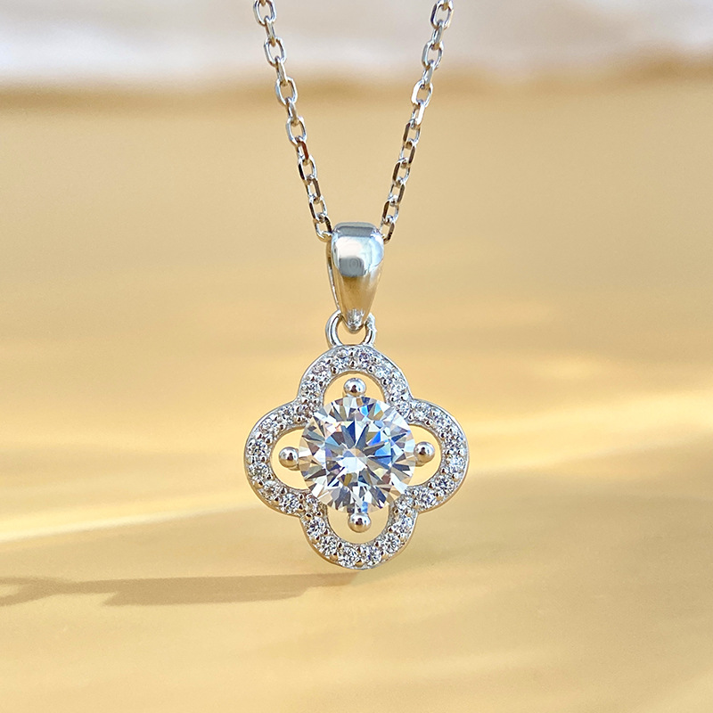 s925 スターリングシルバー モアッサナイト 1 カラット 四つ葉のクローバー ネックレス レディース 多用途 鎖骨チェーン ハイエンド 鎖骨チェーン バレンタインデー