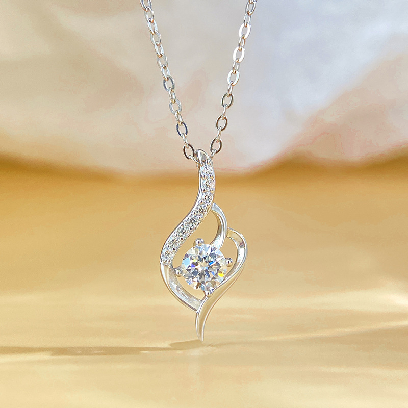 クロスボーダーモアッサナイトネックレススターリングシルバー925鼓動ハート1カラットペンダントスマートウォータードロップカラーモアッサナイトネックレス