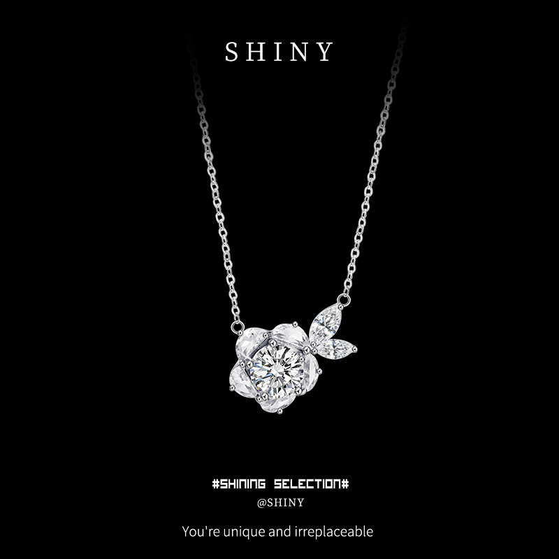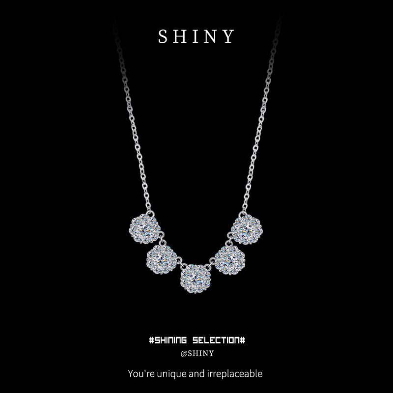 S925 シルバーファッションスターリングシルバーフォレストネックレス気質デザイン四つ葉の花鎖骨チェーンモアッサナイト多用途ネックレスジュエリー