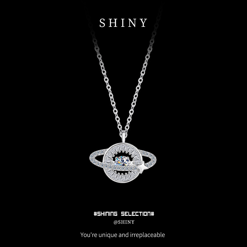 S925 シルバーネックレスプラネットレディドリーム気質モアッサナイト鎖骨チェーンファッションアクセサリーハイエンドデザインペンダント