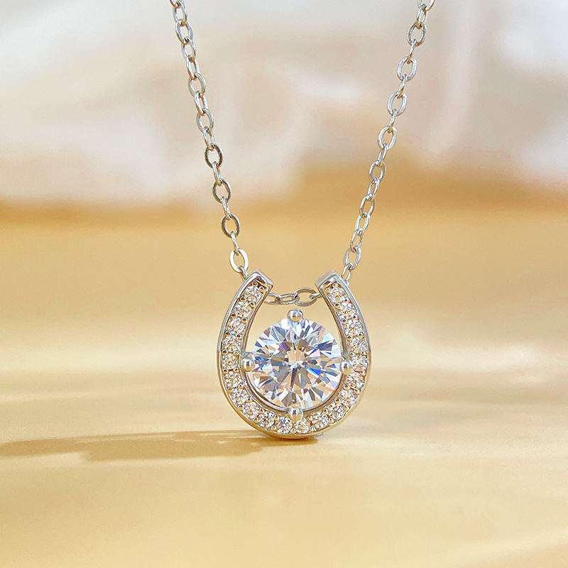 新しい S925 スターリングシルバー モアッサナイト馬蹄ペンダント シンプルで絶妙なヨーロッパとアメリカン スタイルのニッチ デザイン ネックレス クロスボーダー