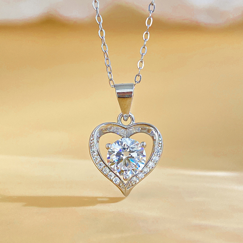 モアッサナイトを象嵌したシルバー925ネックレス、ファッショナブルなハート型ペンダント、ショート鎖骨チェーン、女性用シルバージュエリー卸売工場供給