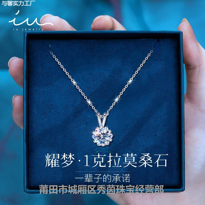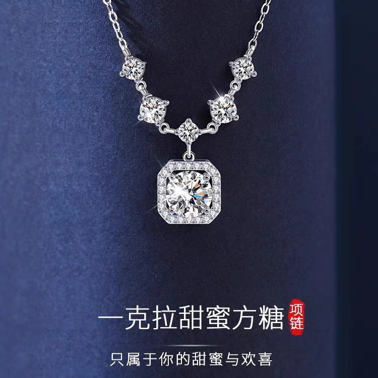 S925 スターリングシルバー 1 カラットの角砂糖モアッサナイトペンダントネックレス女性の鎖骨チェーン小紅書クロスボーダーホットセールモデル