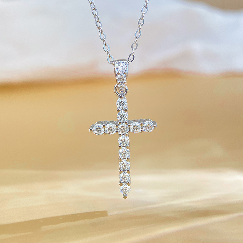 クロスボーダー S925 スターリングシルバー フルダイヤモンド モアッサナイト クロス ネックレス スタッキング ペンダント ヒップホップ 韓国版 ハイエンド鎖骨