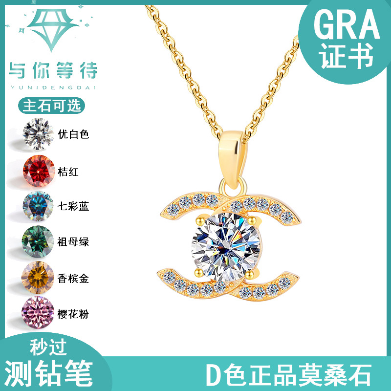 S925 スターリングシルバー モアッサナイト スモール フレグランス ダブル C ペンダント ハイエンド多用途フルダイヤモンド ネックレス工場卸売のための国境を越えた特別供給
