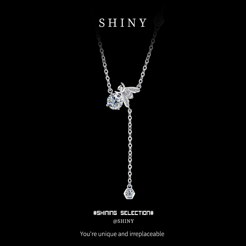 s925 スターリングシルバーライト高級フラッシュダイヤモンド蜂ネックレス女性のための甘いモアッサナイトネックチェーンタッセルウォータードロップ鎖骨チェーンペンダント