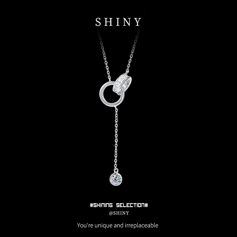 ヨーロッパとアメリカのシンプルなジルコニウムダイヤモンドリングネックレス、ビーズネックレス、フェミニンなダブルリングタッセルネックレス、韓国版