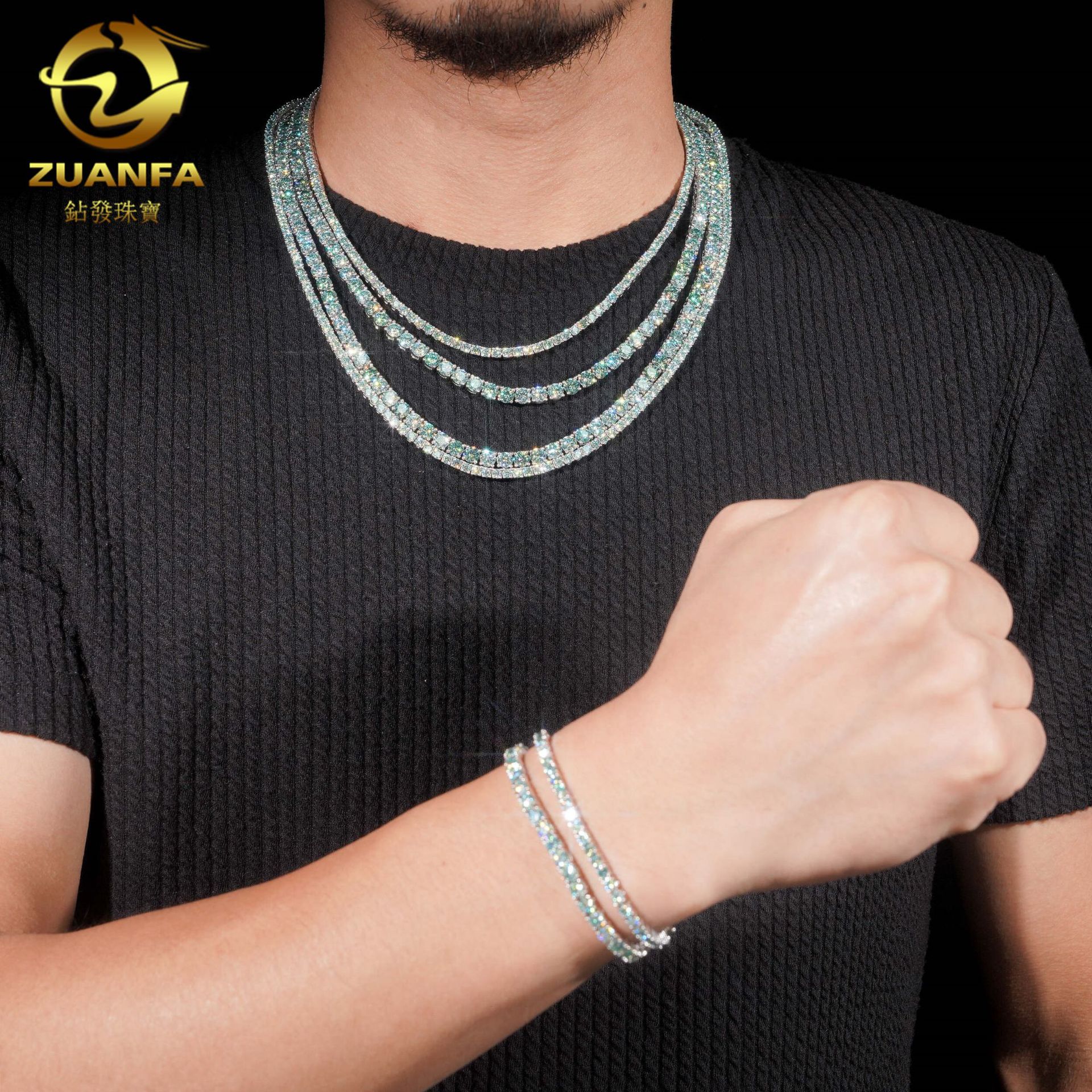 ダイヤモンドヘアクロスボーダー限定 S925 シルバー ブルー グリーン モアッサナイト 3-5mm テニス チェーン GRA 証明書付き ダイヤモンド ペンで即テスト