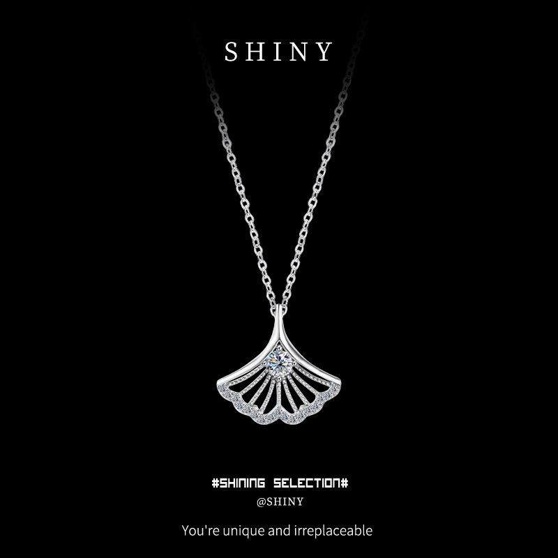芸術的に選ばれたモアッサナイトの扇形の葉の鎖骨チェーン、女性用、クールな気質、幸運の三生、イチョウの葉、スターリングシルバー