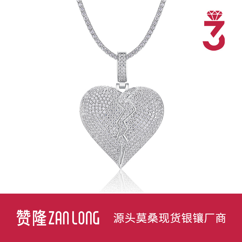 AliExpress ヨーロッパとアメリカの男性と女性のヒップホップ人格ホット販売ブレイクアップハートペンダント S925 スターリングシルバーモアッサナイトペンダントネックレス