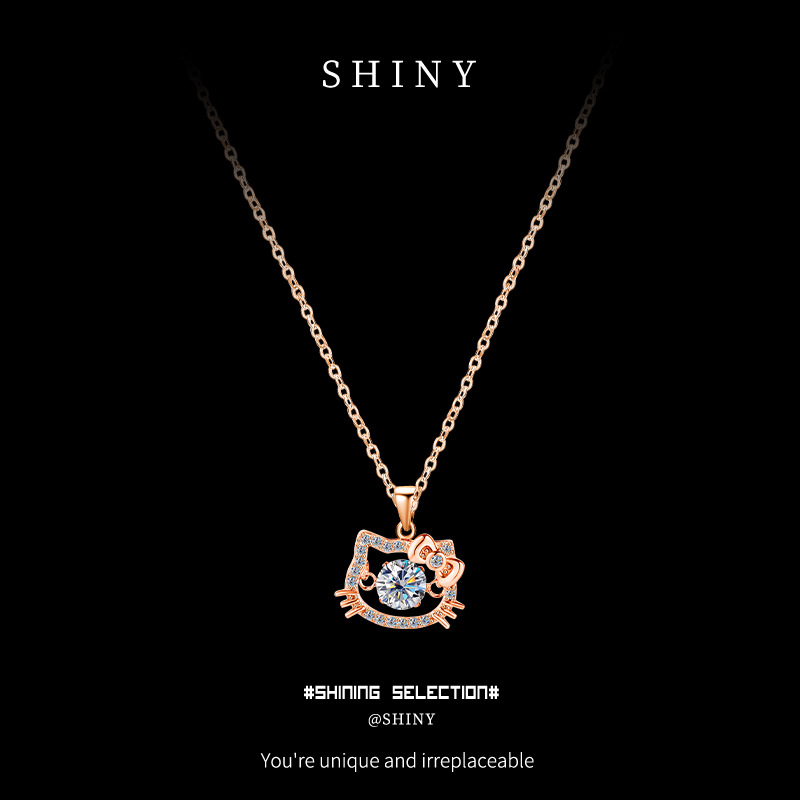 S925純銀の猫と魚のネックレスの霊動莫桑のペンダントの甘い女性の小さい清新な鎖の鎖の高級なネックレス