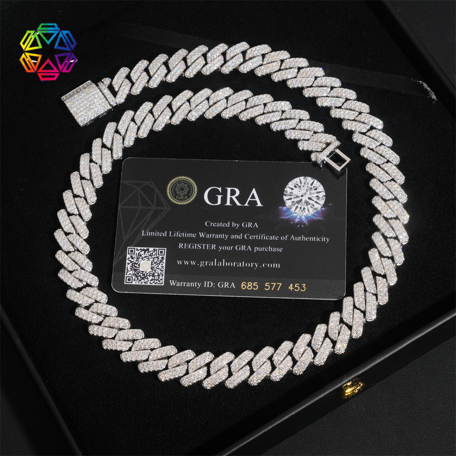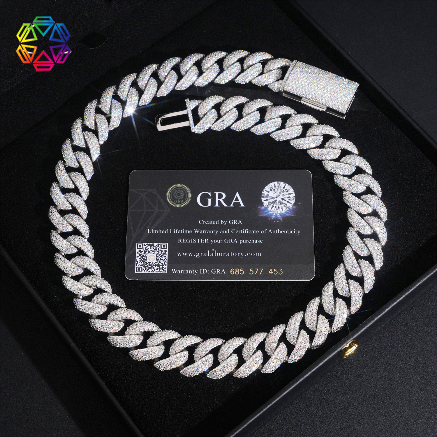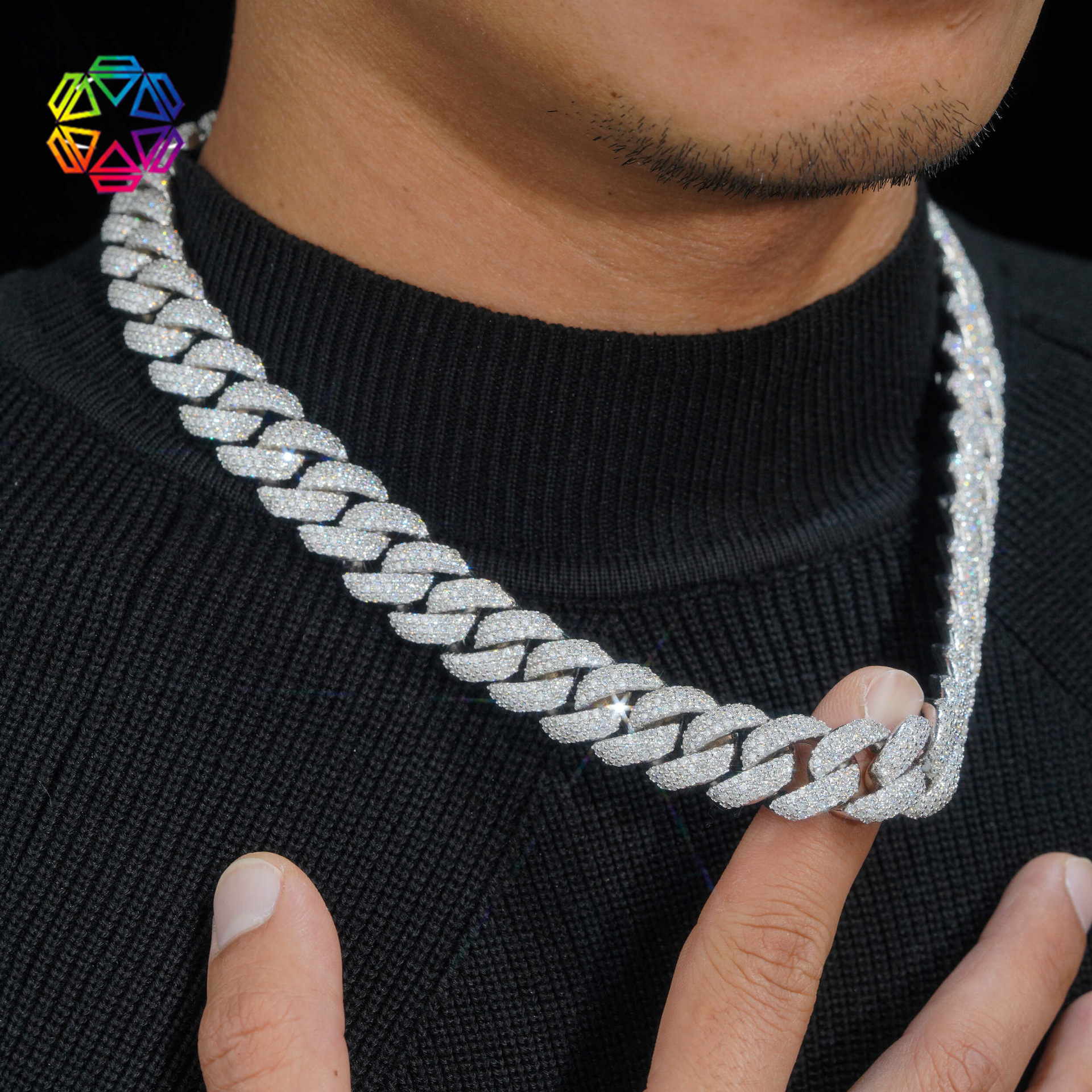 クロスボーダー新ホット販売 S925 シルバーモアッサナイトキューバチェーン 14 ミリメートル複列石ヒップホップモアッサナイトフルセットキューバネックレス