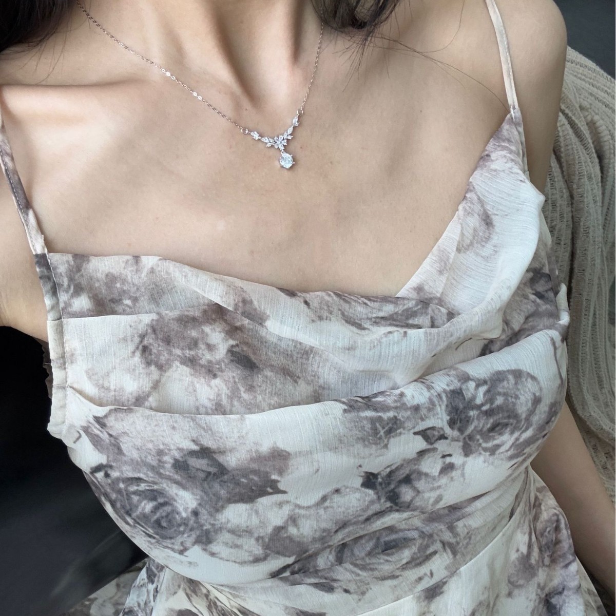 新しいs925銀の花の麦の穂のネックレスの1カラットのジルコンの軽い豪華な組み合わせの高級感の装飾品の誕生日の贈り物の卸売り