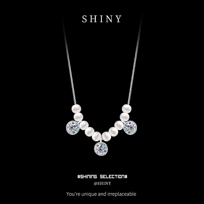 キラキラS925純銀真珠莫桑石鎖骨鎖高級感軽贅沢2025年新転運珠首鎖