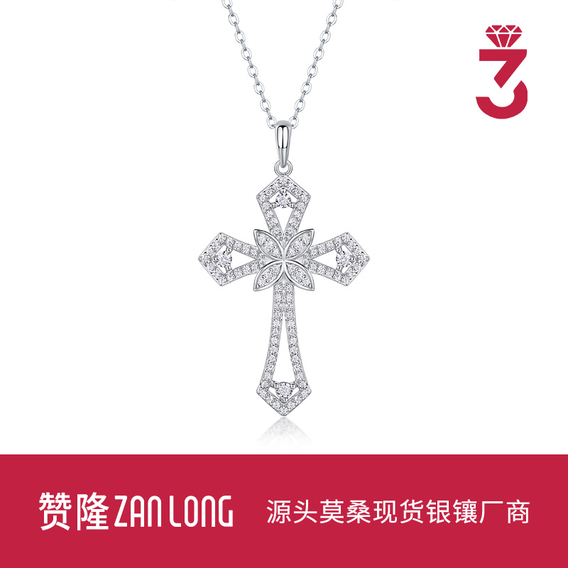 Amazon AliExpress ヨーロッパ、アメリカ、日本、韓国クロスボーダー s925 シルバー モアッサナイト クロス ペンダント ネックレス 男女兼用