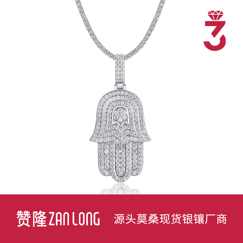 ヨーロッパとアメリカのトレンディな新しいクロスボーダーヒップホップパームペンダント S925 スターリングシルバー象嵌フルモアッサナイトペンダントジュエリー男性と女性用