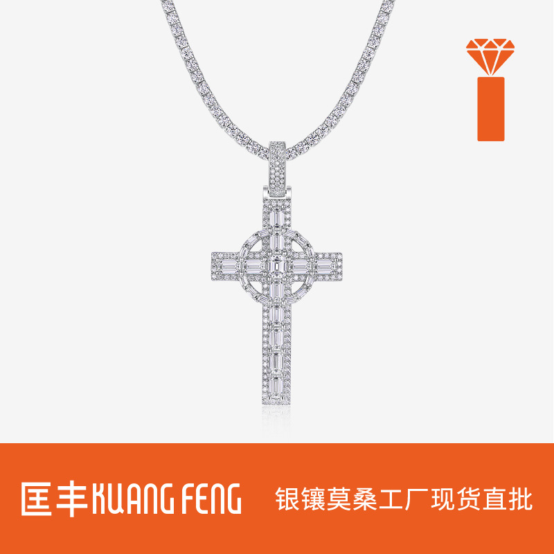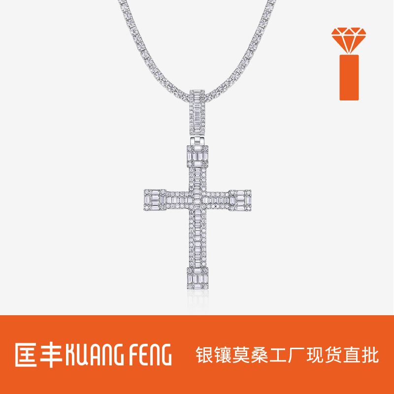クロスボーダーホットセール新 S925 シルバーモアッサナイトヒップホップクロスペンダントヨーロッパとアメリカのトレンディなファッション多用途ネックレス男性用
