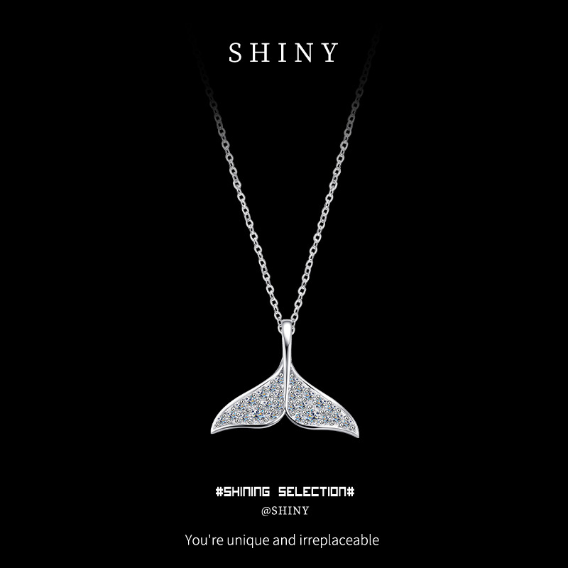 ファッショナブルで多用途なスターリングシルバー 925 イルカフィッシュテール鎖骨ネックレス女性用モアッサナイトインターネット有名人イン気質ライト高級ペンダント卸売
