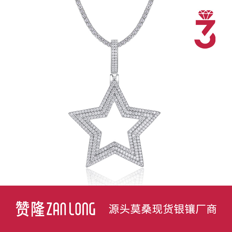 Meikeduo TikTok クロスボーダー五芒星 s925 スターリングシルバー象嵌モアッサナイトメンズペンダントインスタイルヒップホップファッション