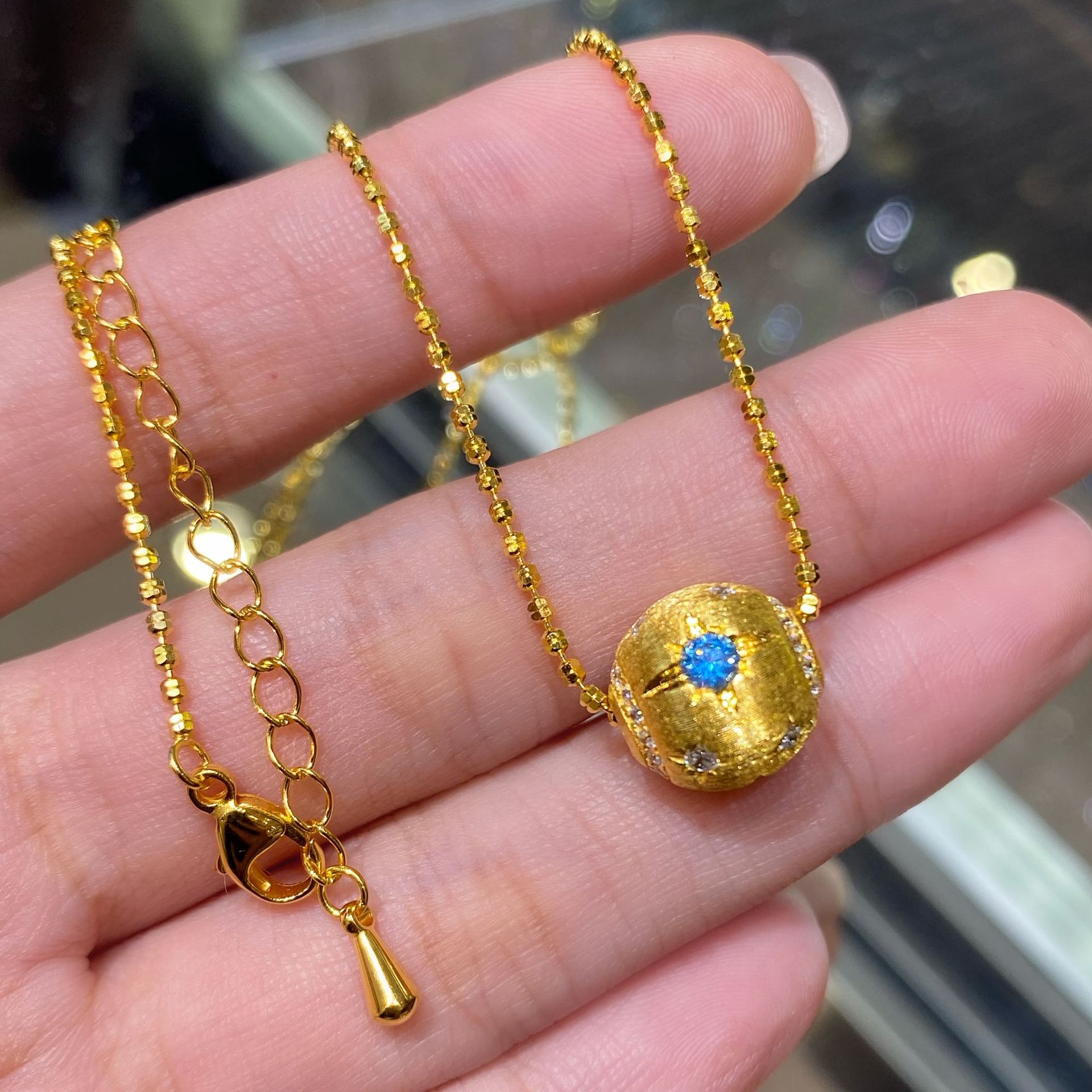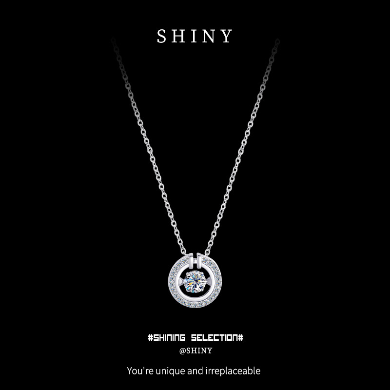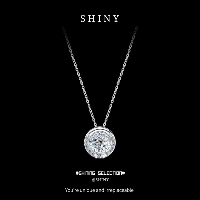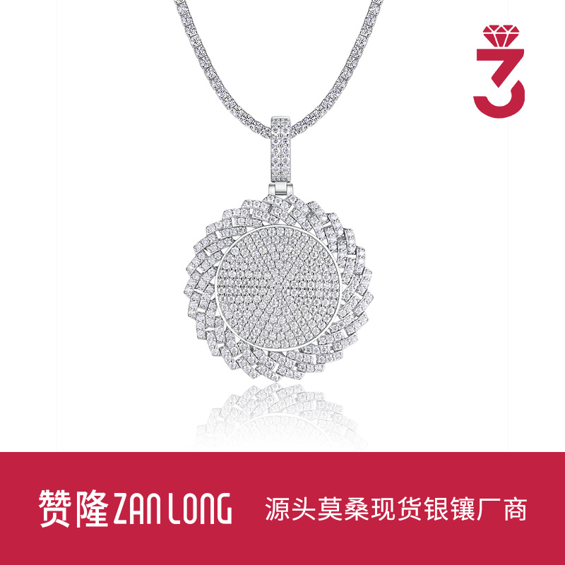 S925純銀ネックレス欧米の潮流純銀莫桑石ネックレスセンター円包霊動ペンダント透かし彫り首チェーン