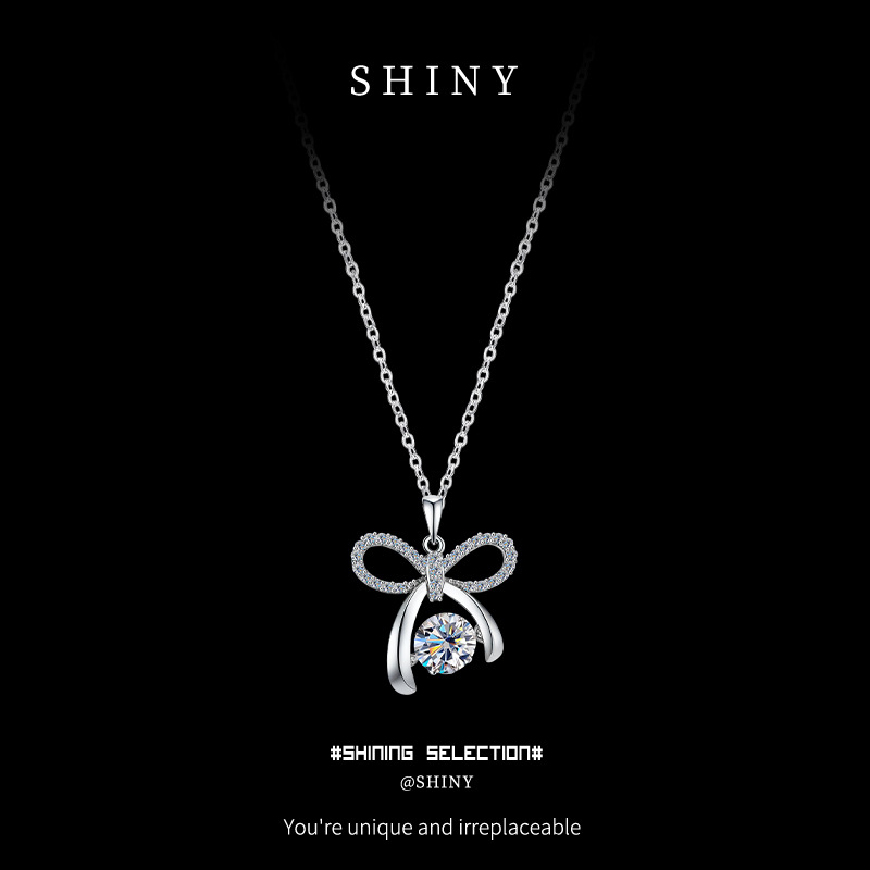 S925通体純銀蝶結び莫桑石ネックレス高級感があります。