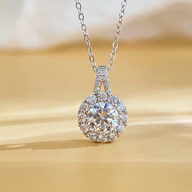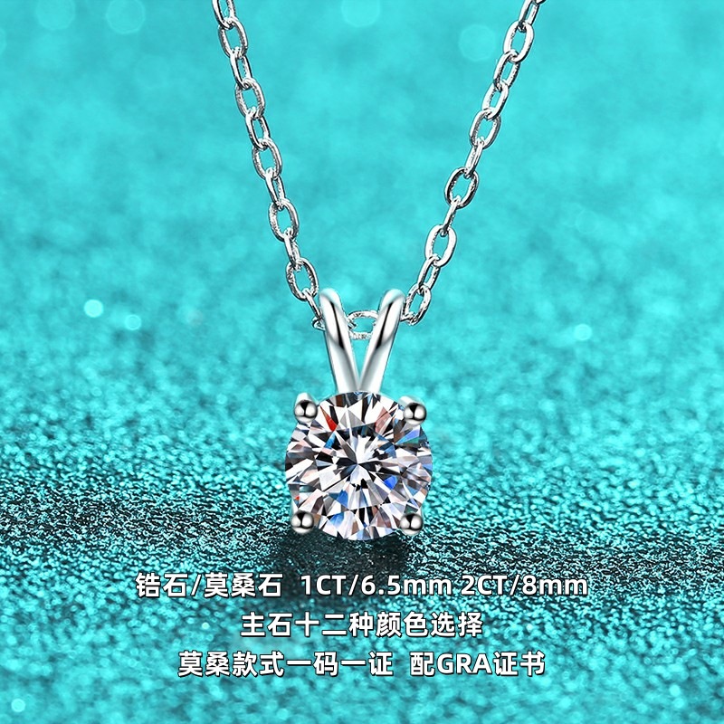 Douyin ライブ販売ホットセール 1 カラット モアッサナイト ファッション プリンセス ラウンド ネックレス レディース シンプルで多用途な鎖骨チェーン ペンダント