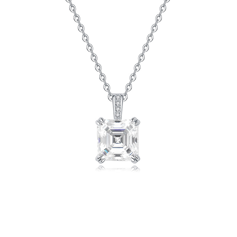 人気S925銀は2カラットの長方形の白い莫桑石のネックレスをはめ込んで証明書のペンダントの工場の源の商品を配合します。