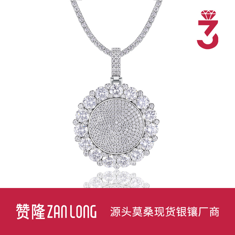 完全にモアッサナイトを象嵌したカスタマイズされた S925 シルバー メダリオン ペンダント、独占的な輝きと個性の選択、職人技によるカスタマイズ