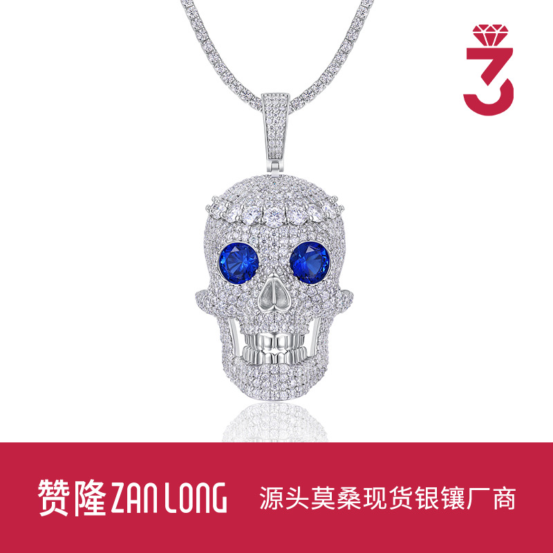 パンクヒップホップメンズ S925 シルバー象嵌モアッサナイトペンダント人格ヨーロッパとアメリカのヒップホップ人格スカルペンダントネックレス