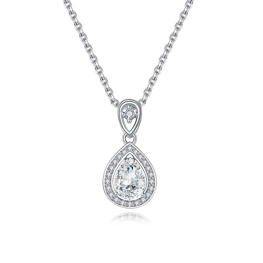 AliExpress ホットセール 5*7 ミリメートルウォータードロップ 0.8 カラットネックレス多用途モアッサナイト鎖骨チェーン S925 シルバーメッキ 18k ゴールド