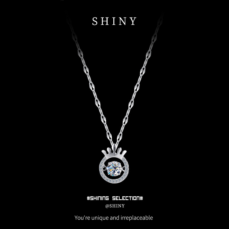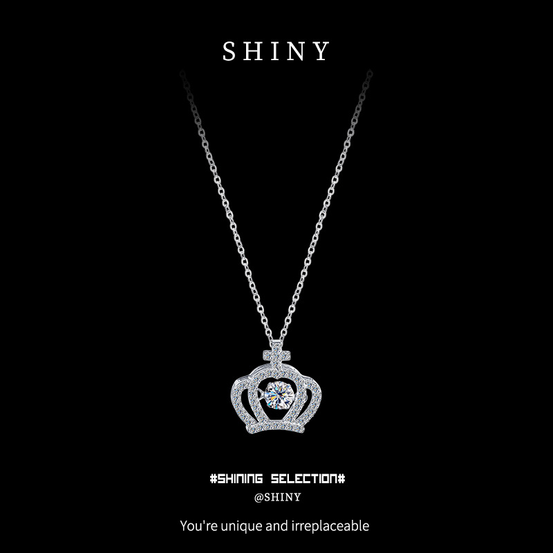 S925純銀の王冠のネックレスの女性の韓国のファッションの霊動の莫桑の鼓動する心のペンダントの気質の鎖骨のチェーンは代行します。