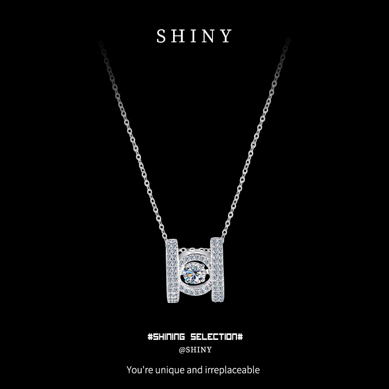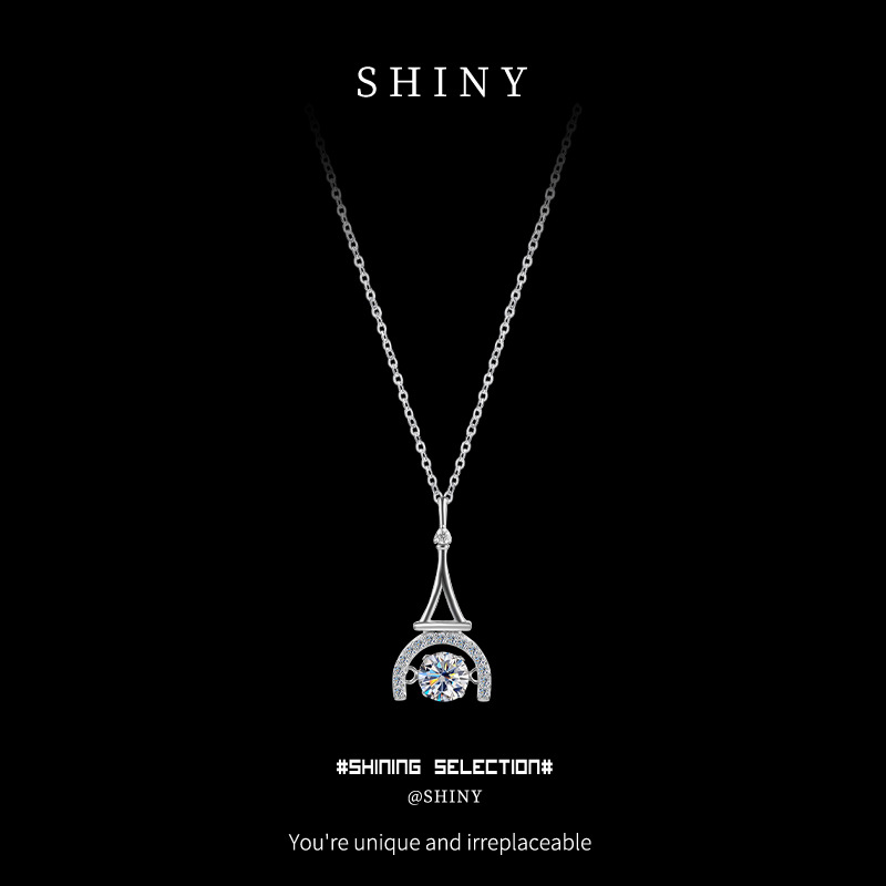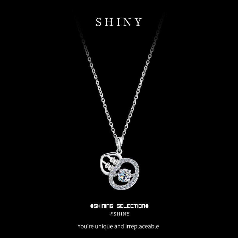 鼓動する心S925銀ネックレス女性韓国版シンプルなモザイク石鎖骨鎖霊動ペンダントアクセサリープレゼント