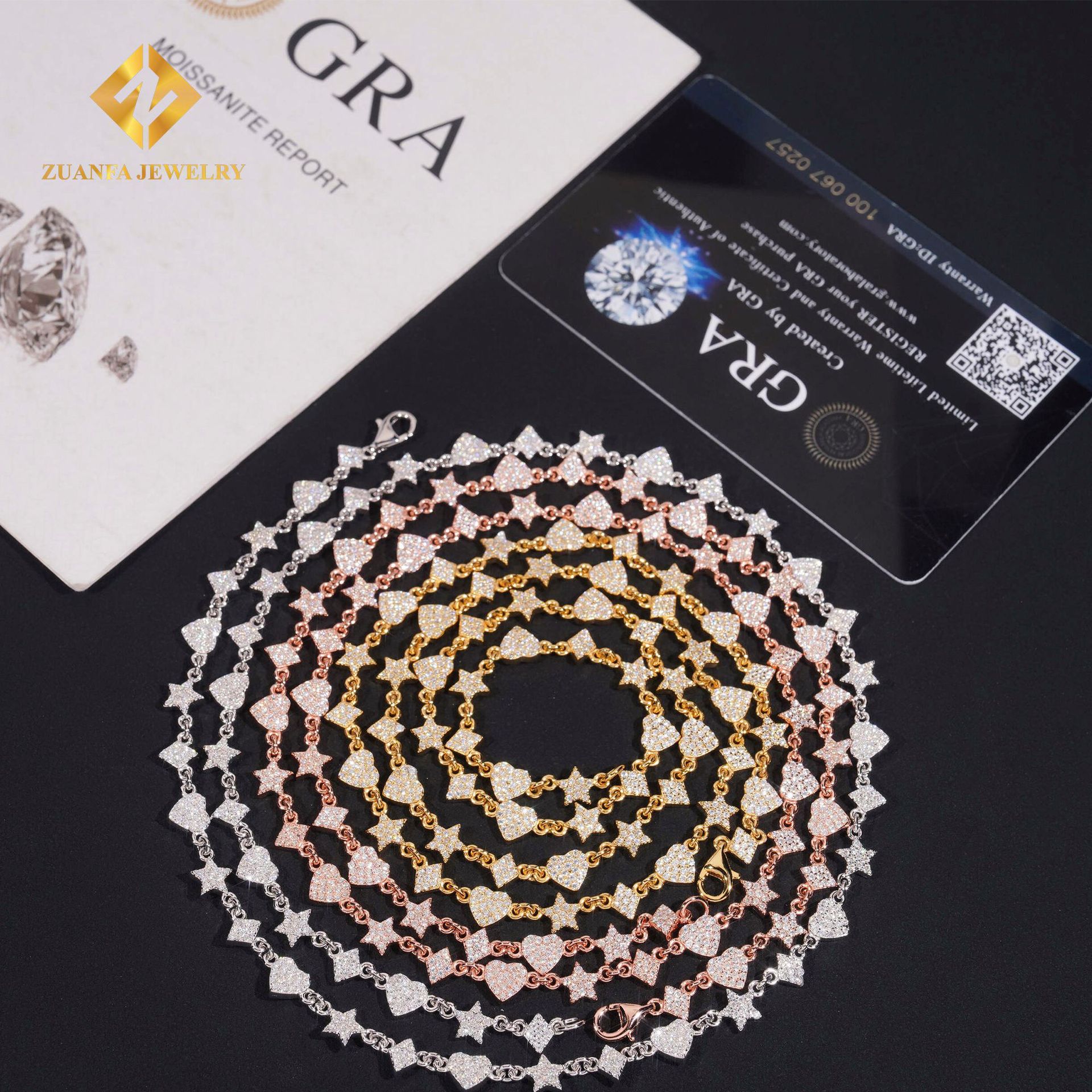 クロスボーダー新スタイル 925 シルバー象嵌 D カラーモアッサナイトテニスチェーンヨーロッパとアメリカのヒップホップ新しいハート型幾何学ネックレスジュエリー