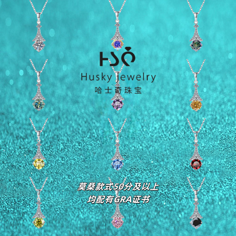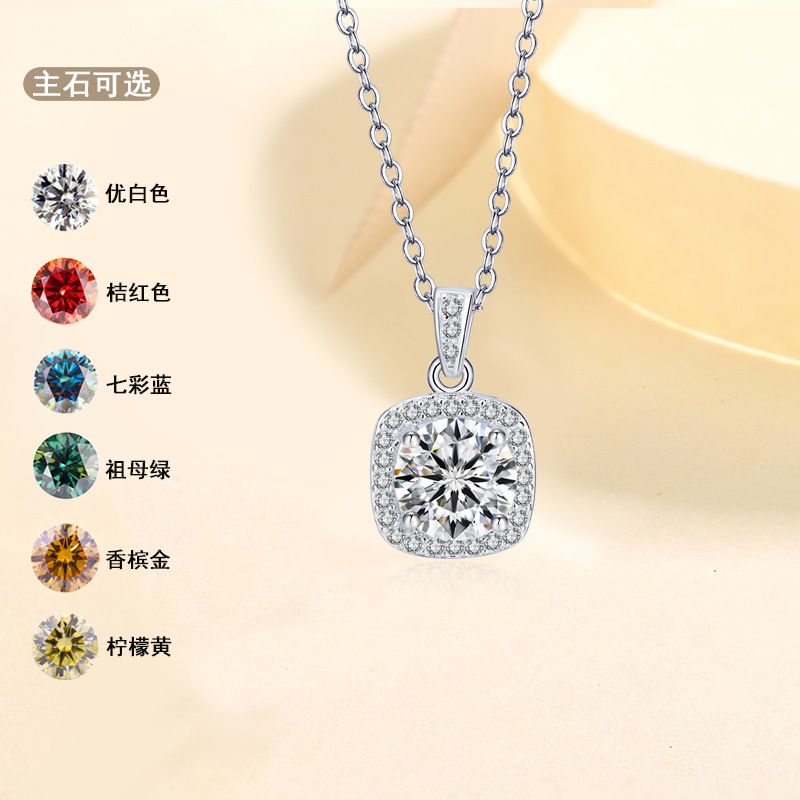 スターリングシルバーカラフルな宝石ネックレス s925 象嵌モアッサナイトシンプルな気質スタイル模擬カラーダイヤモンドネックレスメーカークロスボーダー卸売