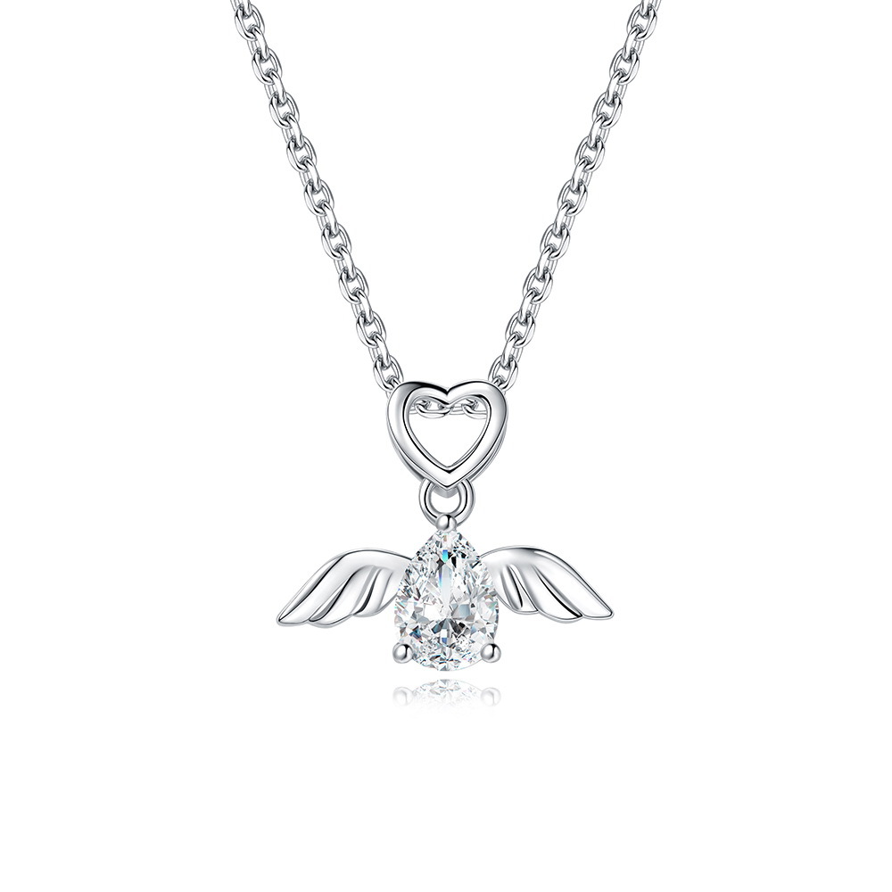 クロスボーダー925純銀天使の翼莫桑石ネックレス女性軽豪華小衆デザイン感ファッション冷淡風鎖骨